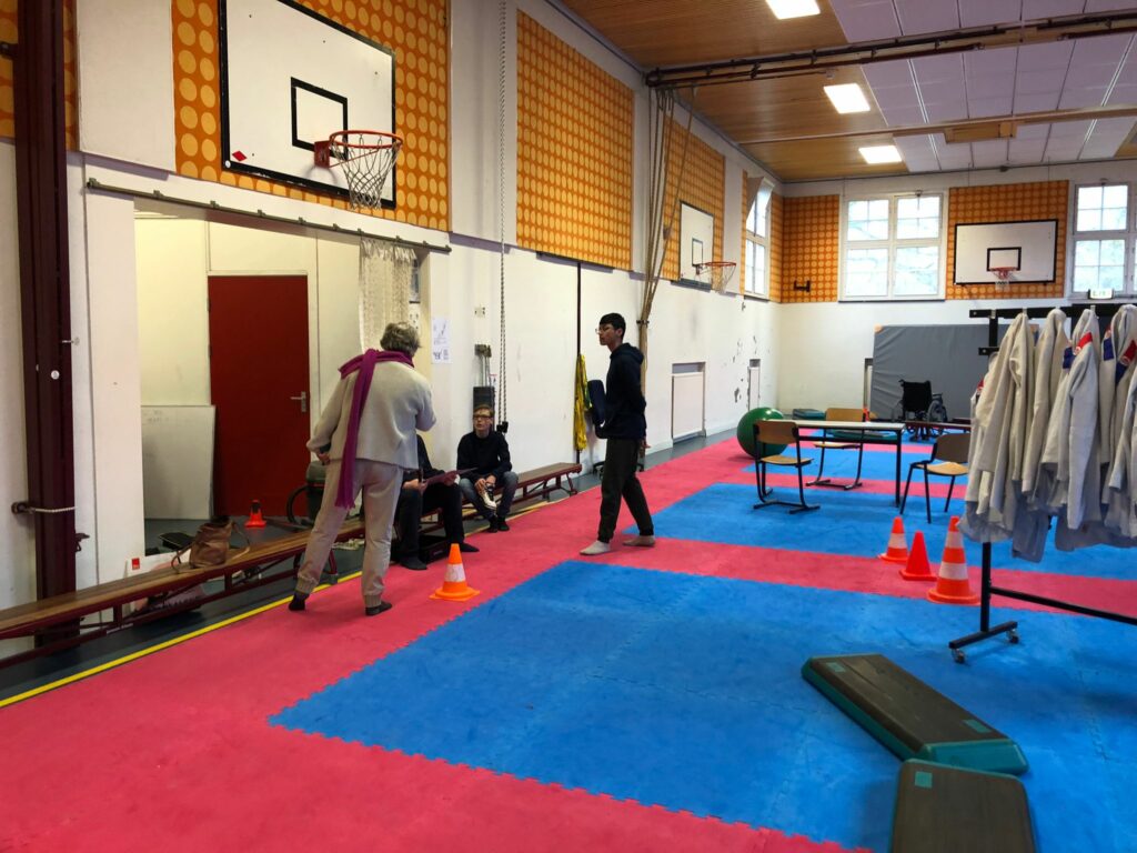 Vrijdag ochtend was het dan zover. Na een kleine tegenslag ( die er ook gewoon bijhoort als je iets organiseert) staken we gezamenlijk de schouders eronder. Een andere ruimte, een iets ander plan maar net zo gaaf als plan A. In de gymzaal van de school bouwden we een stukje maatschappij na. Drempels, hoogte obstakels, smalle doorgangen, iets van de grond raken, markeer doppen, terras met stoelen en een kledingrek. Overal was aan gedacht. De tweede jaars kregen instructies. Hun alternatieve gymles was een les waar ze hopelijk net zo veel van leerden. Na een introductie van de organisatoren gingen de tweede jaars in duo’s het parcours door. De één blind of in de rolstoel, de ander begeleider en omgekeerd. Voorzichtig en beheerst tastten zij hun weg af.